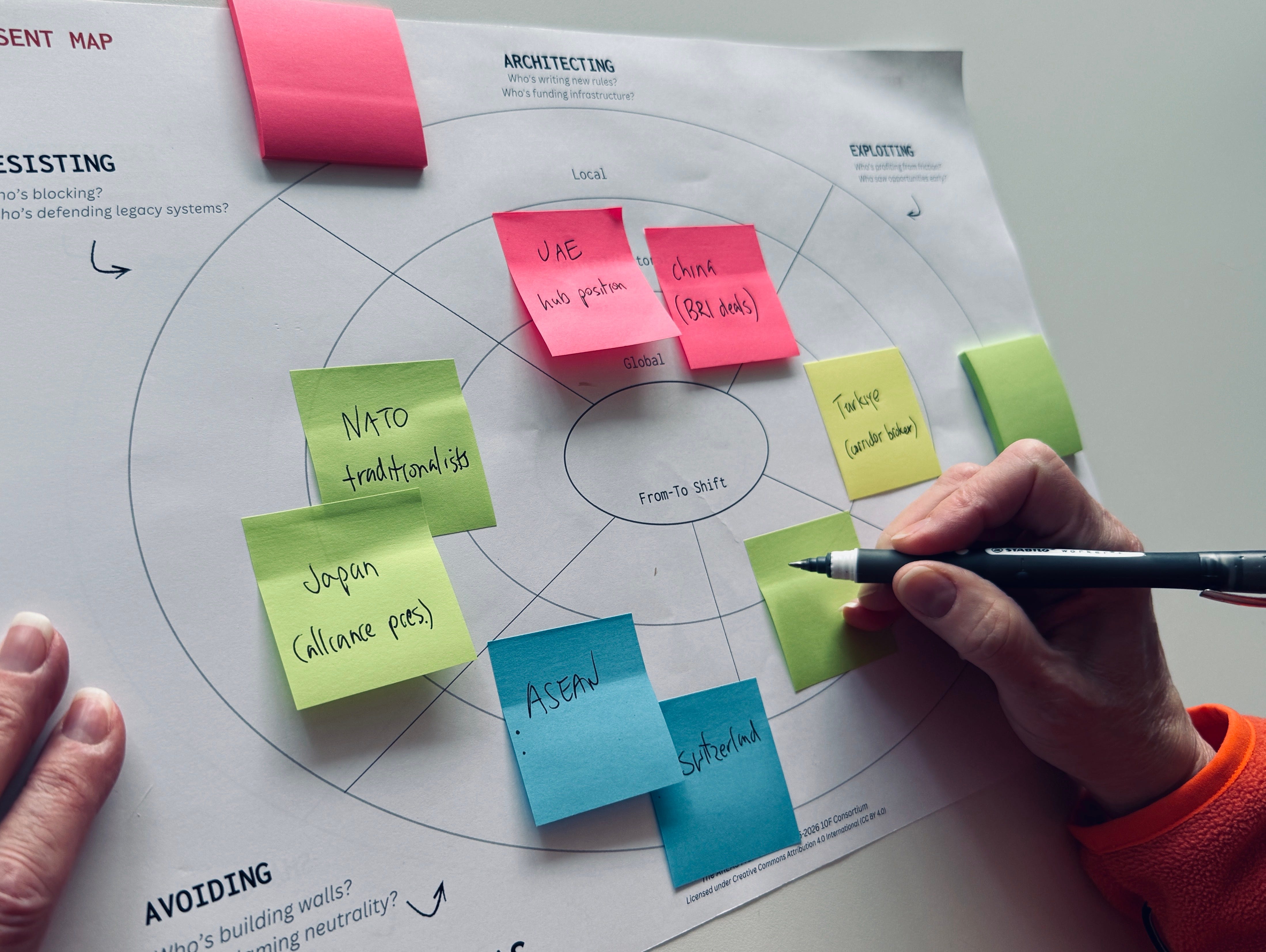 When you’re only mapping the present, you’re asking: who’s actually in charge of this shift? Who’s fighting it, and do they have the resources to sustain that? Who’s making money from the friction? Who’s getting reshaped without a say? Are there positions nobody is occupying — and what does that empty space mean?